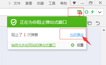 当赛贝选择了【支付宝支付】,并点击【提交订单】时,在360浏览器地址栏的最右边,有个带了数字红点的小窗口图标,点击它打开弹窗,选择【允许弹出】即可。